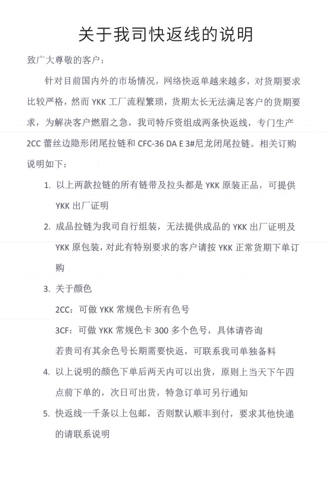 關(guān)于我司快返線(xiàn)的說(shuō)明.........